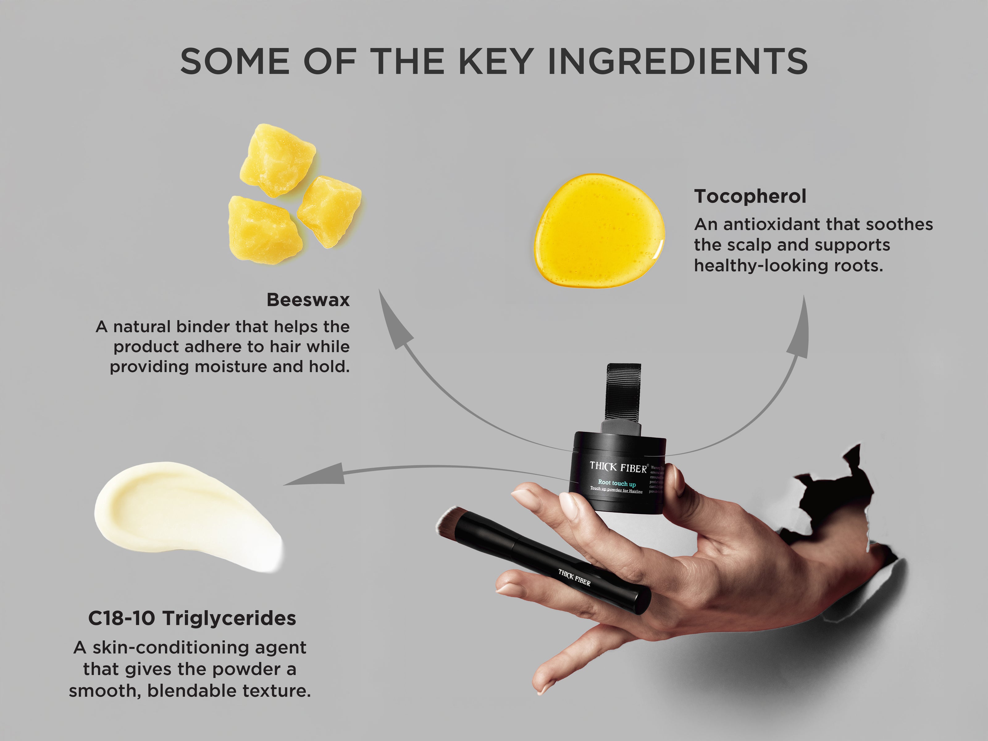 The THICK FIBER Root Touch Up Powder is your secret weapon for effortlessly concealing thin hairlines and those unwelcome gray roots...